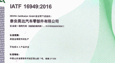 公司擁有IATF16949:2016國際標(biāo)準(zhǔn)質(zhì)量管理體系認(rèn)證,精良的設(shè)備、先進的生產(chǎn)工藝及完善的質(zhì)量檢測保證了公司產(chǎn)品的可靠品質(zhì)...